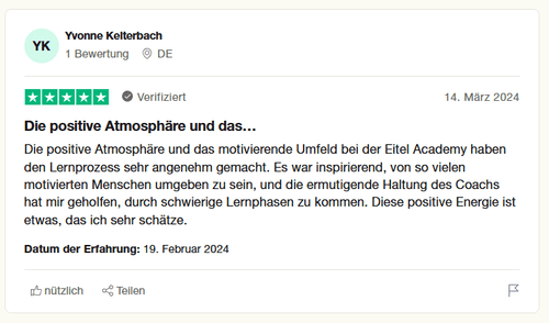 Echte Stimmen. Echte Ergebnisse. Schau dir an, wie unsere Kunden die Zusammenarbeit mit der Eitel Academy erlebt haben.
